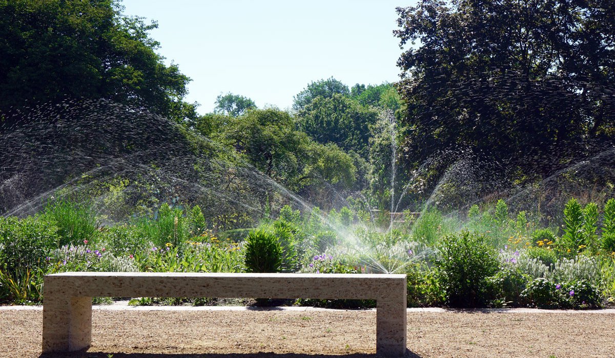 Das neue Bewässerungssystem für die Rasen- und Staudenflächen besteht aus teilflächenspezifischen Ventileinheiten mit über 500 ressourcenschonenden Rotationsversenksprühdüsen. Die neue webbasierte Bewässerungssteuerung ermöglicht den Zugriff auf das System für ein bedarfsgerechtes Wassermanagement. Die Höhe der Wassergaben wird an die saisonalen klimatischen Verhältnisse angepasst. Dabei wird jede Wassergabe automatisch protokolliert.